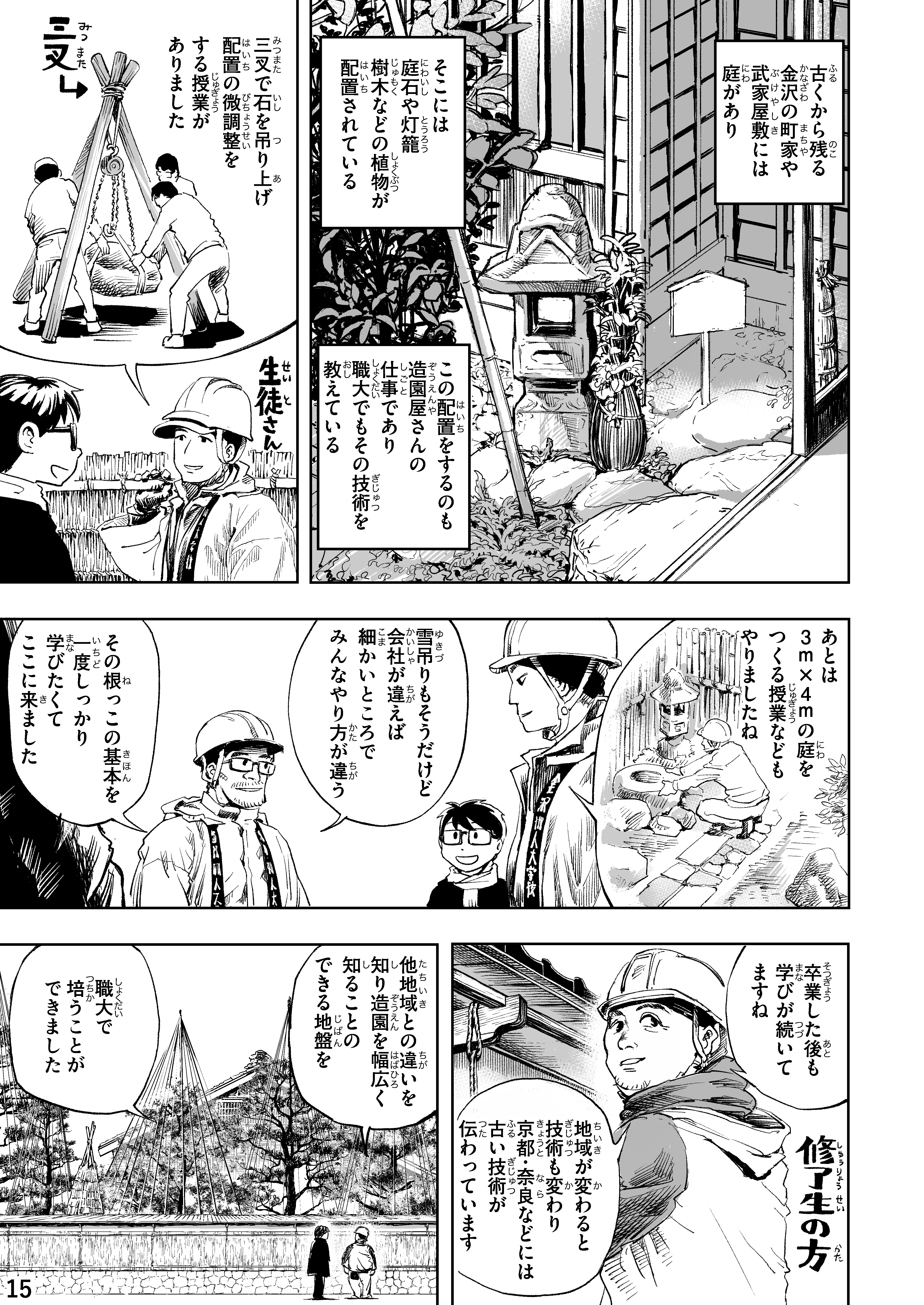 まんが 瓦科 石工科 造園科の紹介